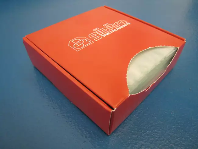 Engineered for oscillating chamber (MD) rheometer applications, Gibitre Instruments’ polyester foils ensure practical, consistent handling of materials testing. Each 100 × 100 mm, 23 μm sheet withstands the high temperatures typical of rheometric measurement, maintaining stable contact throughout the test cycle. A 500-sheet, front-opening dispenser enables fast, orderly access that speeds setup and reduces bench interruptions. The thin, highly uniform format supports repeatable conditions between runs, maximizing the efficiency of your instruments and tools. This ready-to-use solution provides reliable sheets for continuous MD tests, supplied in a durable, easy-to-manage holder. Choose them to streamline workflows and ensure continuity in your materials measurement activities.