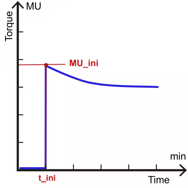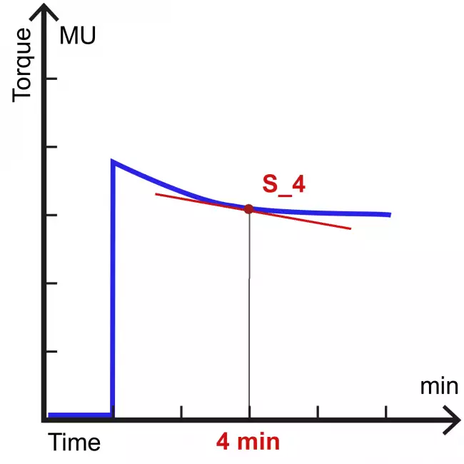 The calculation returns the slope of the linear regression line of the log(torque) versus log(time) plot over a specified time interval after stopping the rotor at the end of a Mooney viscosity measurement. According to ISO Standard the regression is calculated between 1.6 and 5 seconds from rotor stop.
