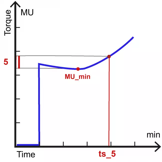 The calculation returns the time in minutes including warm-up time, for the viscosity to increase by a specified amount from the minimum value.