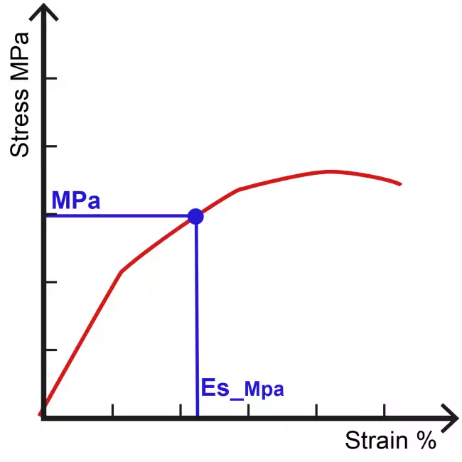 Es: Elongation at set Stress This calculation returns the Elongation reading (Strain %) at set Stress.