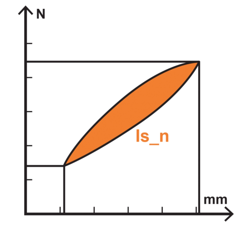 Is: Hysteresis measured at cycle n This calculation returns the Hysteresis Energy N*mm ie the energy lost during the execution of the load and unload of the sample. The result corresponds to the area of the loop corresponding to the load-unload cycle.