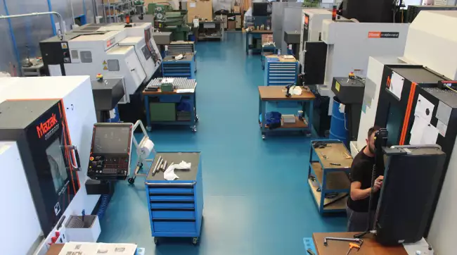 Gibitre's machining department. Top view of Mazak CNC machining centers.