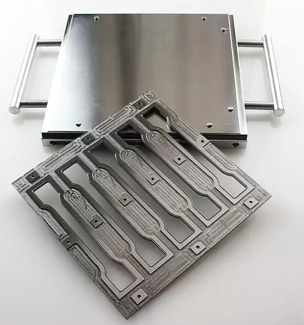 Tensile testing molds for thermoplastic materials according to ISO 527-1 / 2/3, 178, ASTM D 638, 790, 882, 3574, etc.